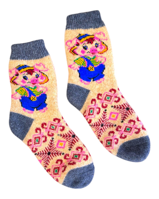 Handmade Wool Socks with lil Piggies