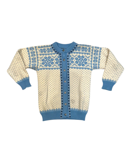 Vintage Dale Of Norway Blue and White Wool Cardigan Sweater