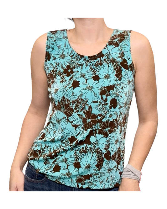 Vintage Y2K Turquoise and Brown Floral Tank Top