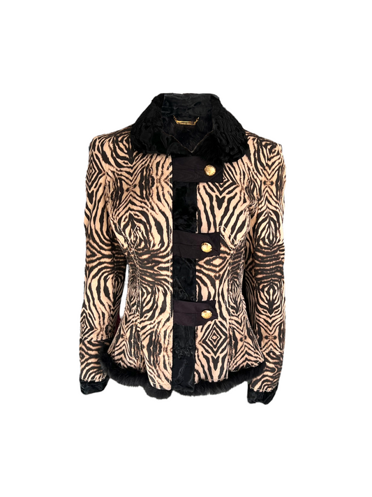 Vintage 2006 Roberto Cavalli Zebra Print and Fur Coat