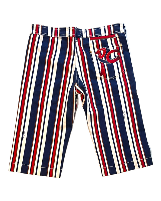 Vintage 2006 Roberto Cavalli Red, White and Blue Striped Capri Jeans