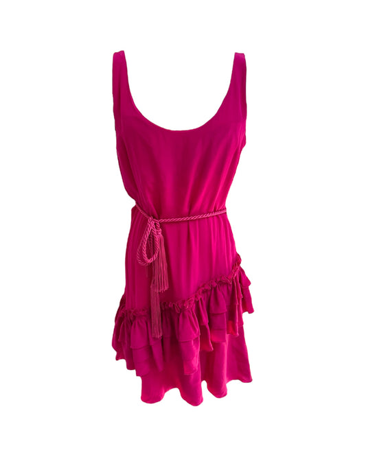 Vintage 2007 Galliano Pink Silk Ruffle Dress with Tassel Belt