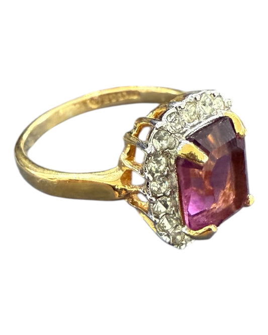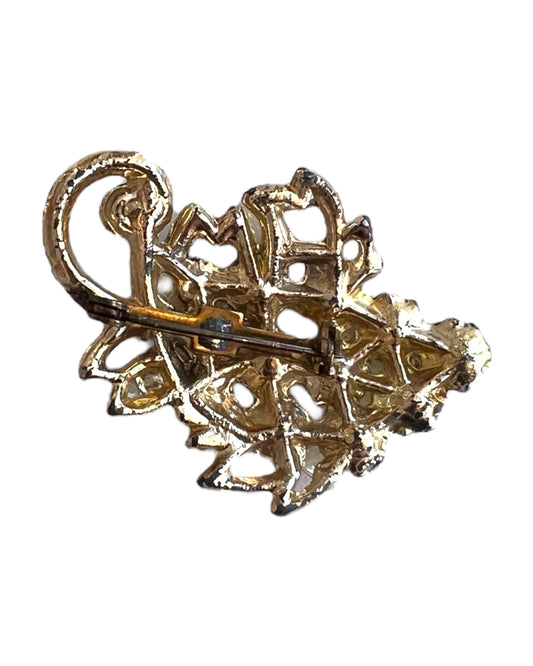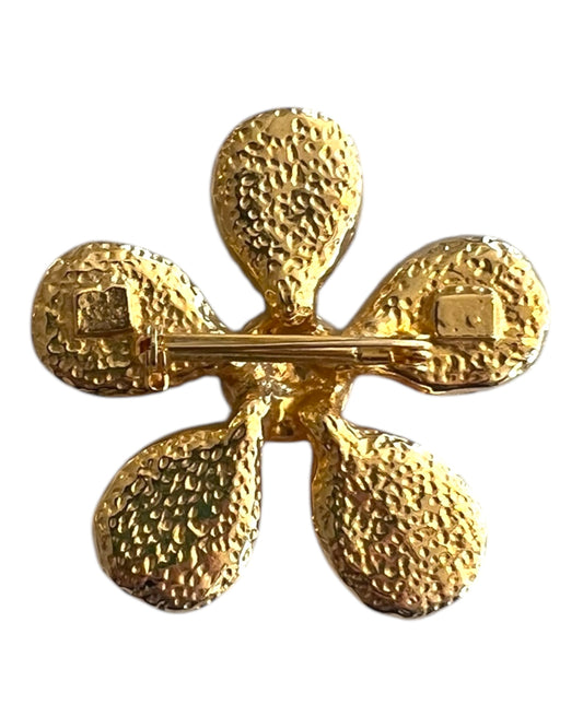 Vintage Crystal Rainbow Flower Brooch in Gold Setting