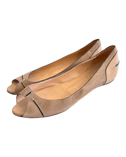 Vintage Christian Louboutin Beige Suede Peep-toe Flats