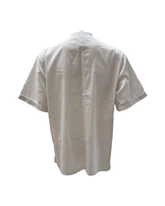 Vintage Collarless Cotton Stripe Short Sleeve Button-Up Top