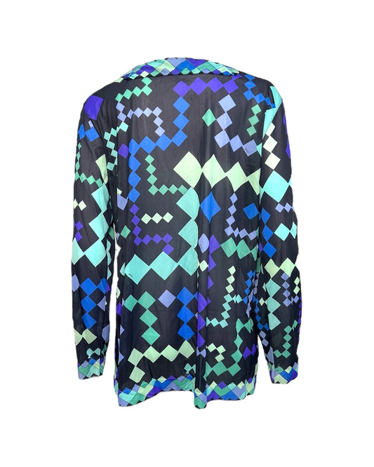 Vintage Emilio Pucci Blue Geometric Sheer Blouse