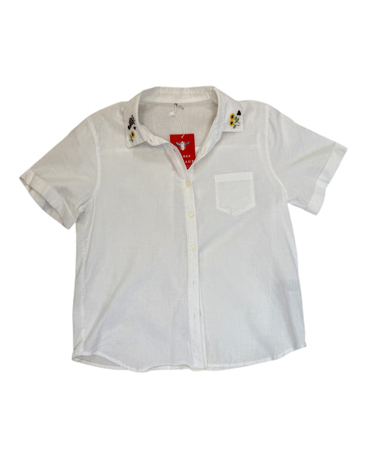 Vintage Embroidered Cotton Button-Up Top