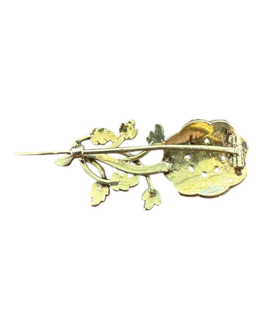 Vintage Gold Rose with Ruby Red Crystal Pin