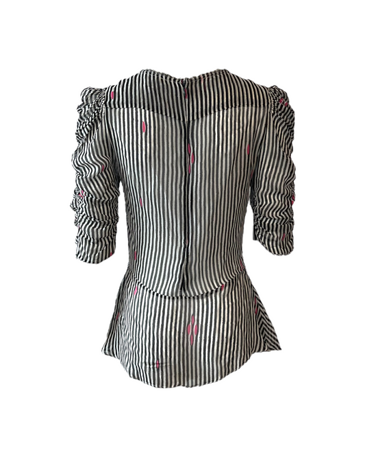 Vintage Isabel Marant Black, White and Pink Sheer Striped Peplum Top