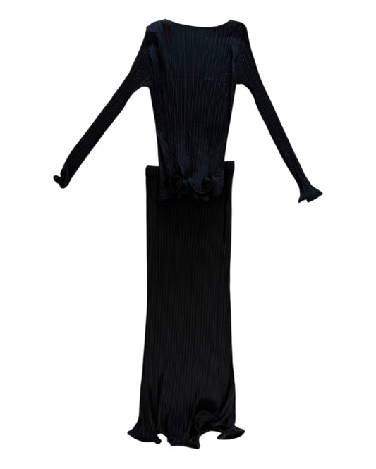 Vintage Issey Miyake Pleats Please Black Ruffle Skirt Set