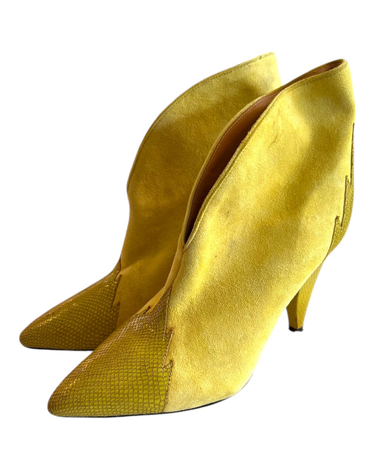 Vintage Isabel Marant Yellow Suede and Lizard Leather Bootie Heels