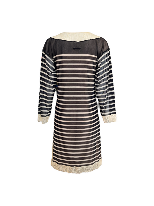 Vintage Jean Paul Gaultier Black and Beige Striped Lace Cover-Up