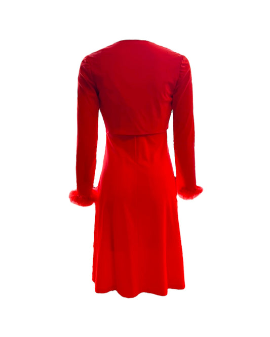 Vintage Mini Red Dress Set with a Rose Pin and Feather Trim