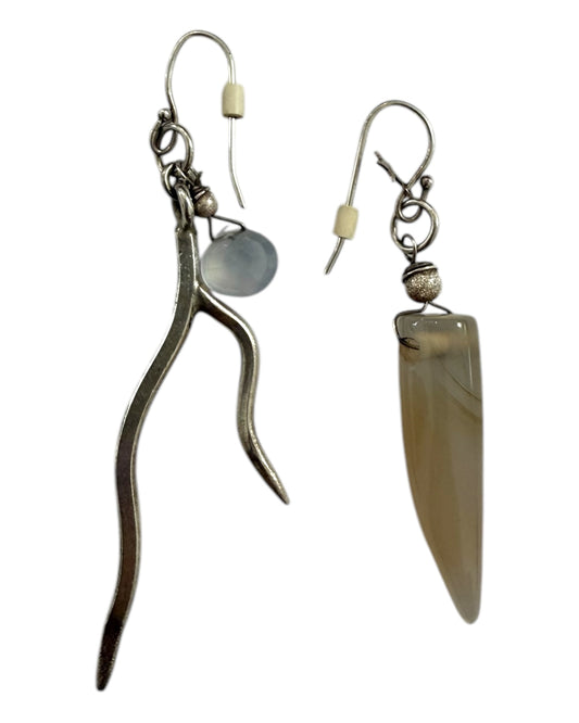 Vintage Mismatched Silver and Crystal Dangly Earrings