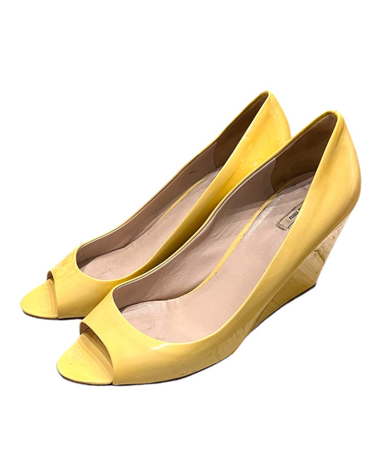 Vintage Miu Miu Yellow Peep-Toe Wedges
