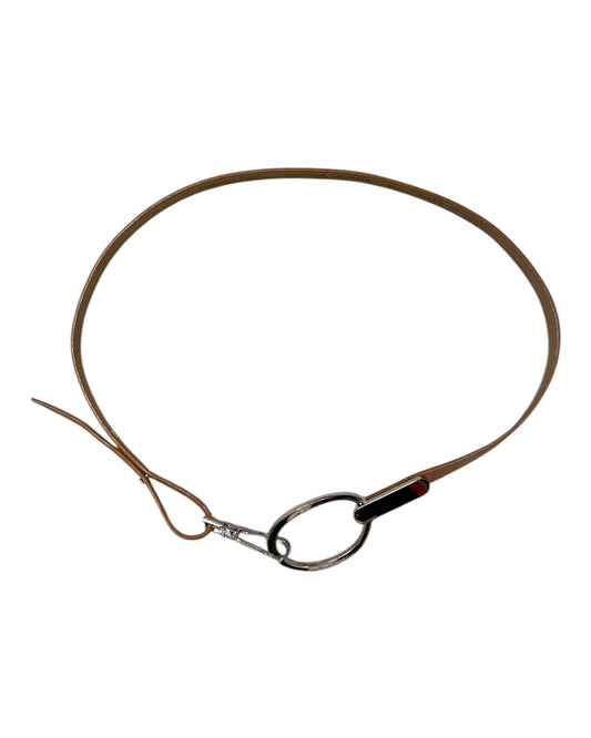 Vintage Mod Silver and Tan Leather Skinny Belt