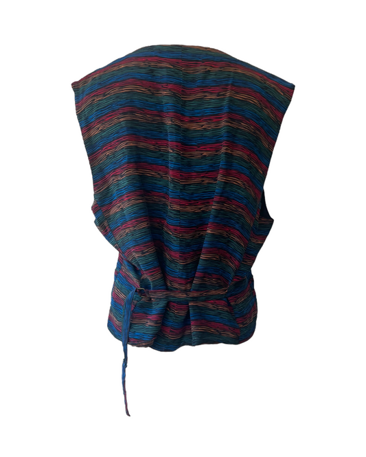 Vintage Perry Ellis Black Multicolor Striped Silk Waist Coat Vest