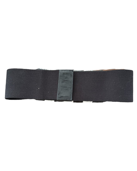 Vintage Patent Leather Black and White Stripe Elastic Waist Belt