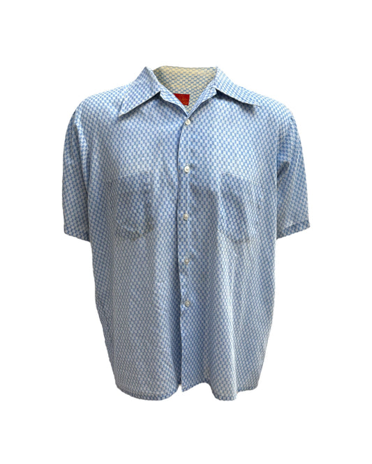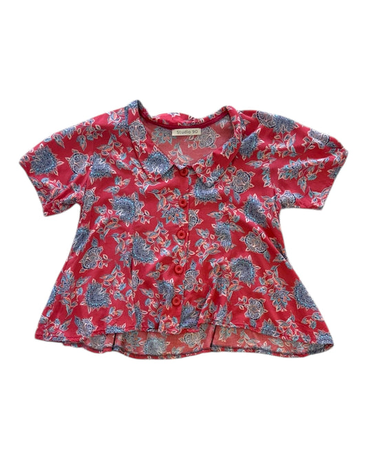 Vintage Red and Blue Short Sleeve Button-Up Tops