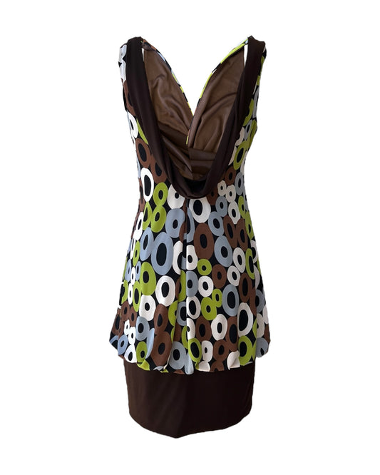 Vintage 1970s Brown, Green and Turquoise Backless Mini Bubble Dress