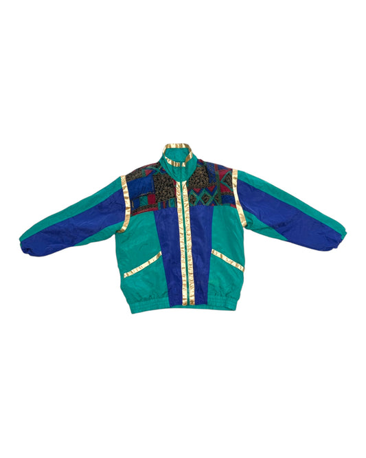 Vintage 1980s Green, Blue and Gold Silk Windbreaker