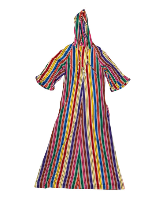 Vintage 1970s Rainbow Hooded Maxi Dress with Zipper