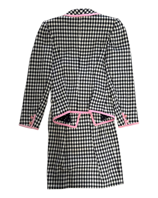 Vintage 1980s Emanuel Ungaro Black, White and Pink Checkered Skirt Suit