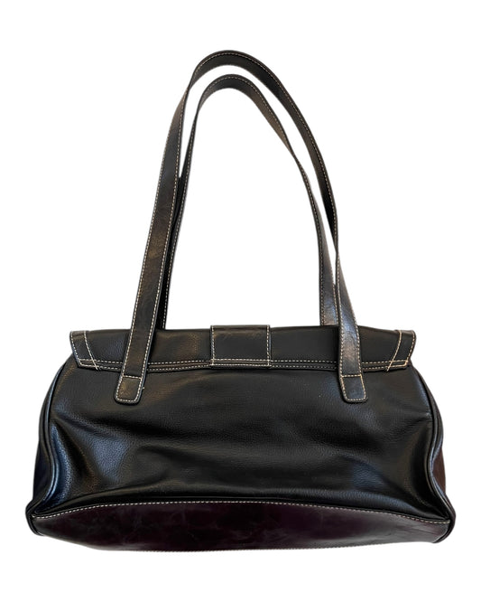 Vintage 2000s Black Leather Slouchy Bag with Gold-Tone Hardware