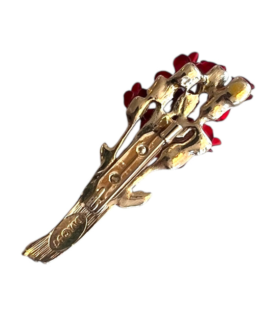 Vintage Gold Rose with Ruby Red Crystal Pin