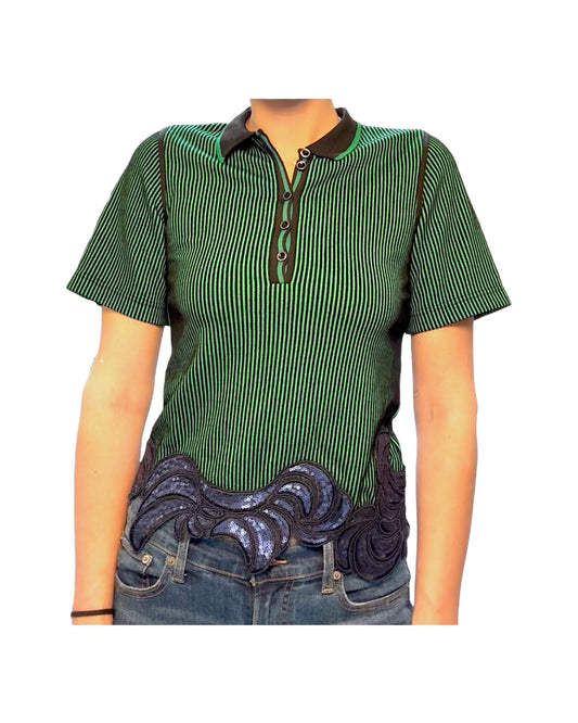 Pre-Loved CP Shades Pink and Grey Stripe Button-Up Top