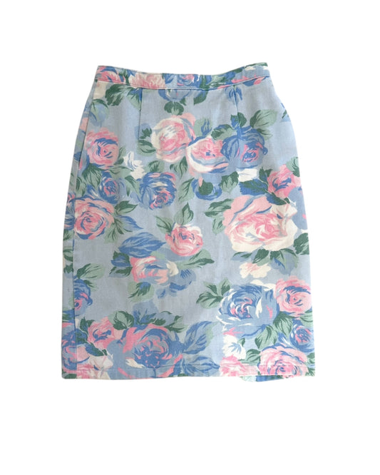 Vintage Floral Denim Skirt
