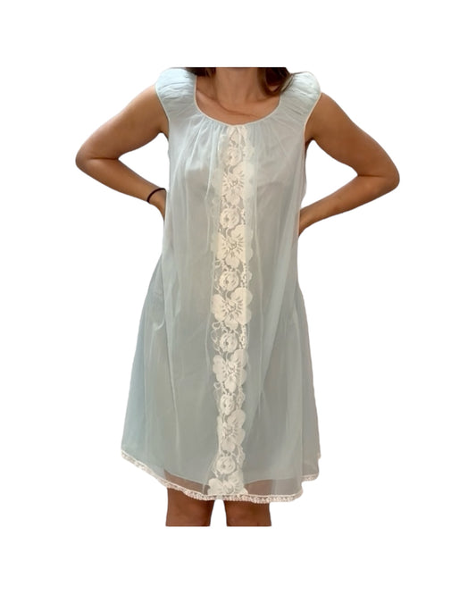 Vintage Ecru Lace-Trimmed Lingerie Slip Dress