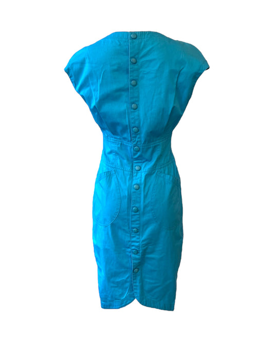 Vintage 1980s Thierry Mugler Blue Cotton Shirt Dress