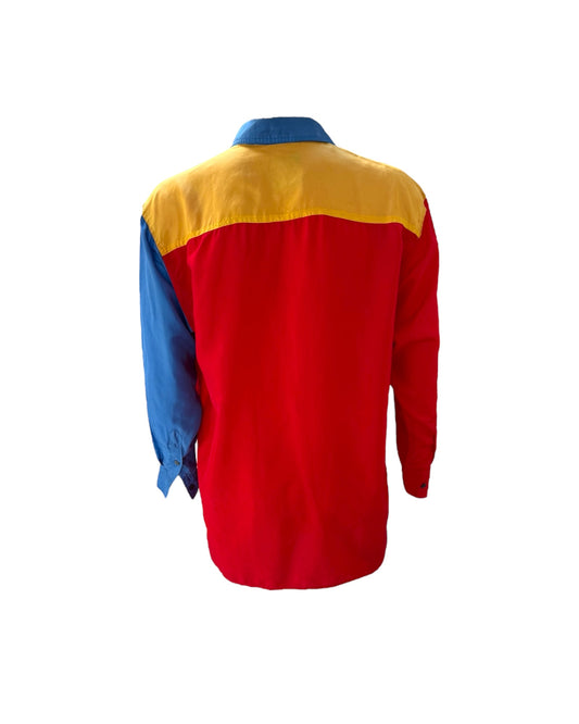 Vintage Red and Blue Short Sleeve Button-Up Tops
