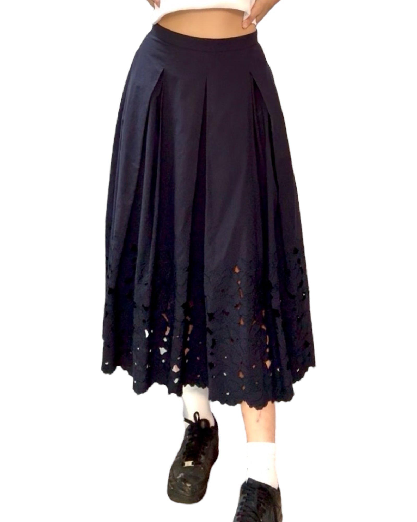 Pre-Loved ERDEM Navy Blue Floral Midi Skirt