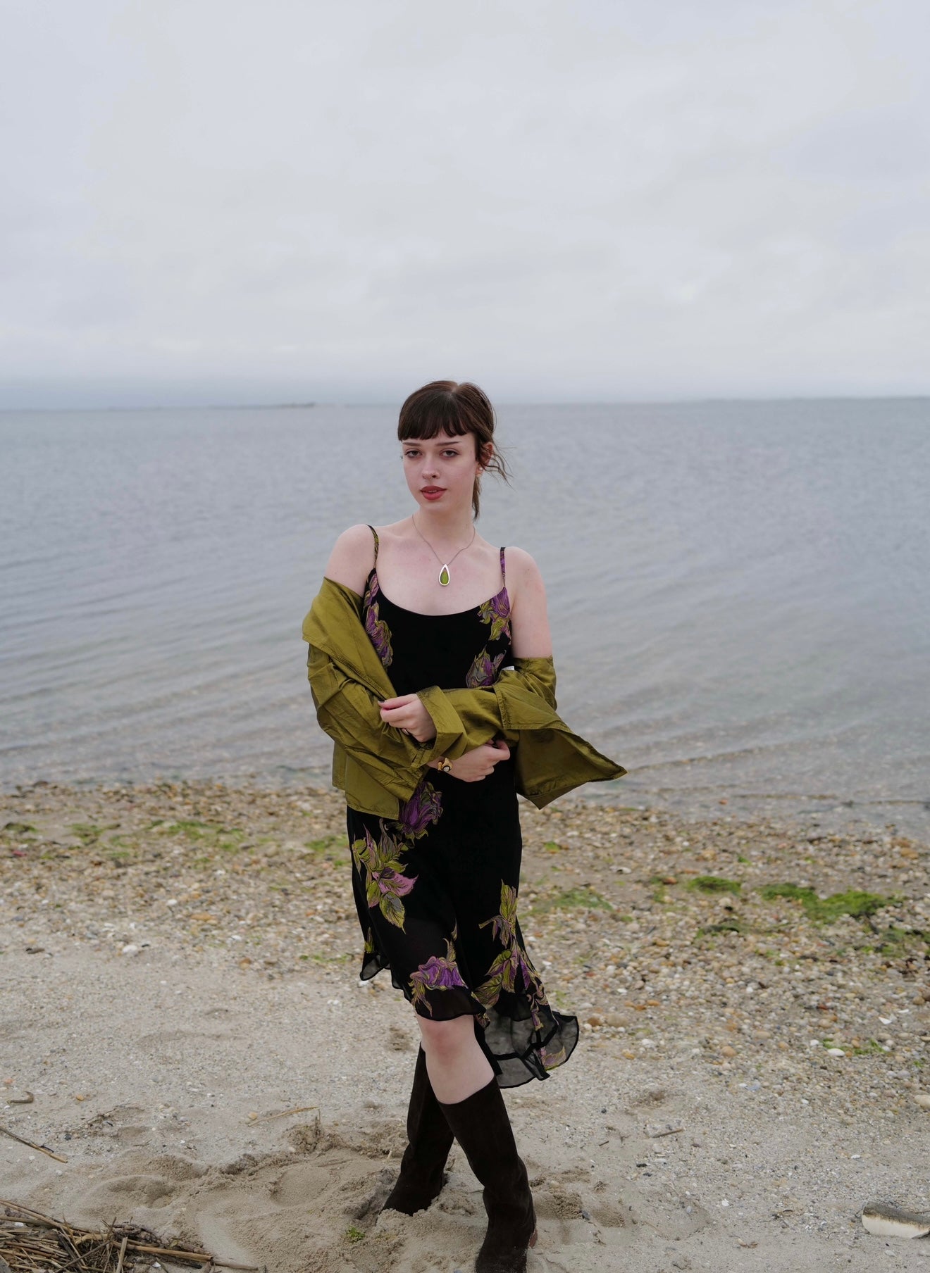 Vintage 1990's Betsey Johnson Asymmetrical Black Floral Dress