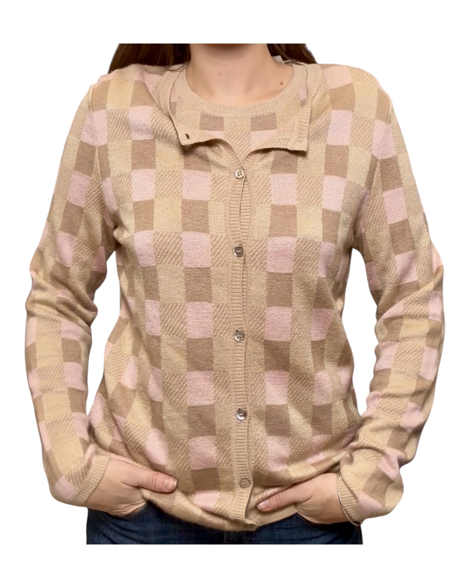 Vintage 1990's Bill Blass Pink and Tan Plaid Sweater Set