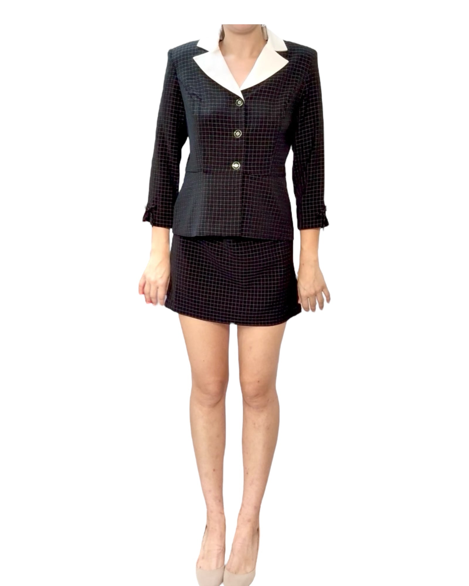 Vintage Black and White Checkered Skirt Suit