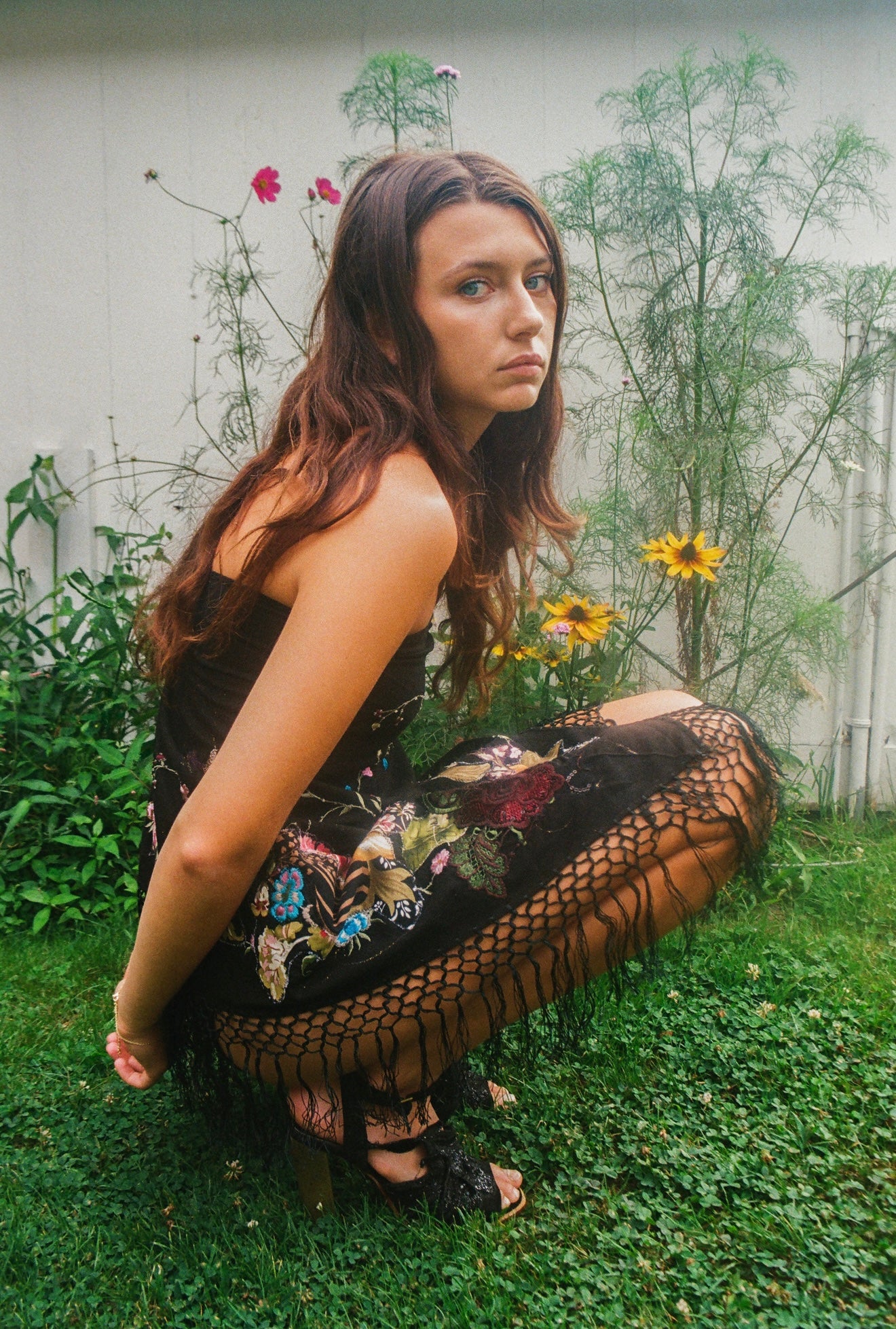 Vintage Black Embroidered "Friendship" Shawl
