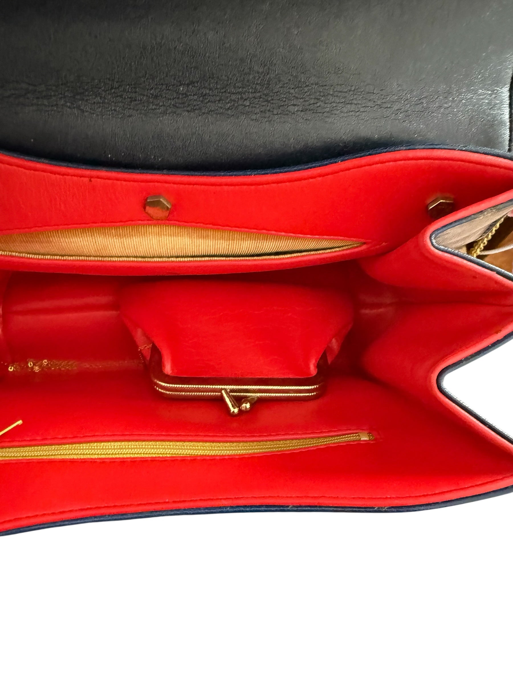 Vintage Blue Leather Bag with Coin Purse Attachment
