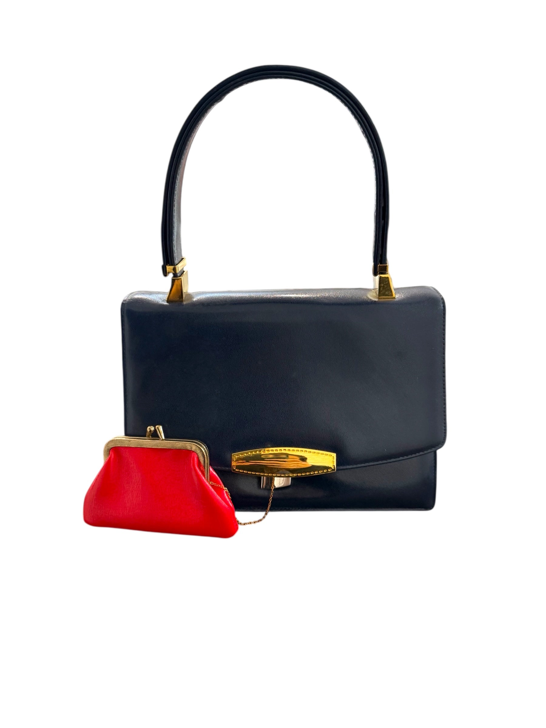 Vintage 1950s/1960s Blue Leather Bag with Coin Purse Attachment