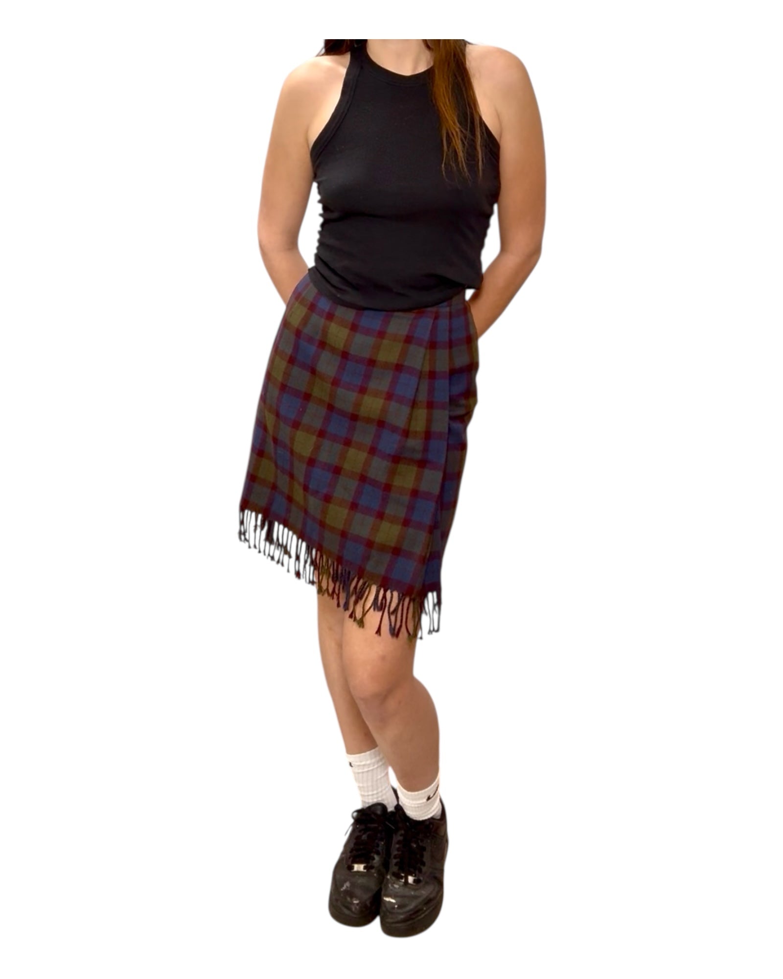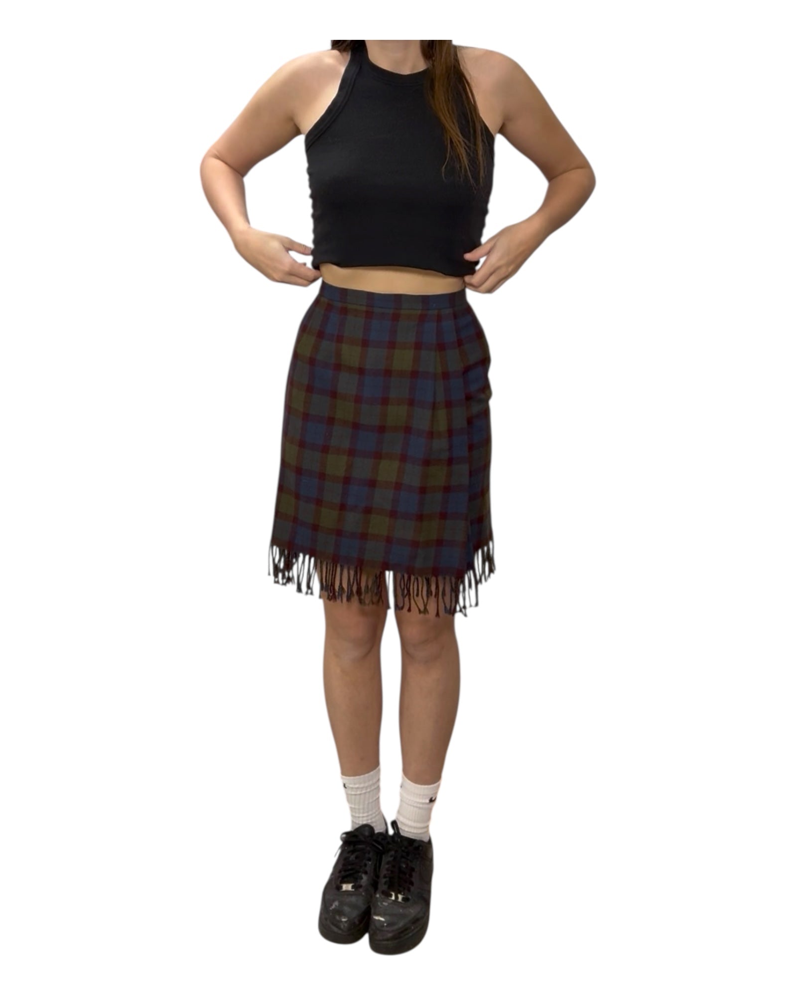 Vintage Carlisle Plaid Wool Skirt with Fringe