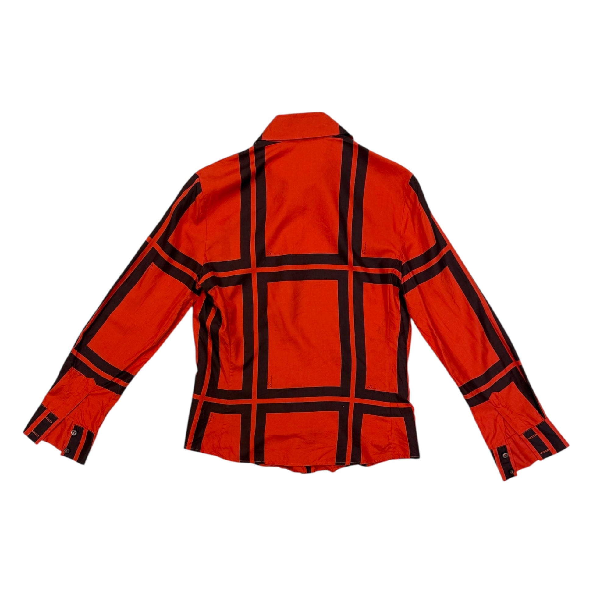 Vintage Gucci Orange and Black Plaid Silk Blouse