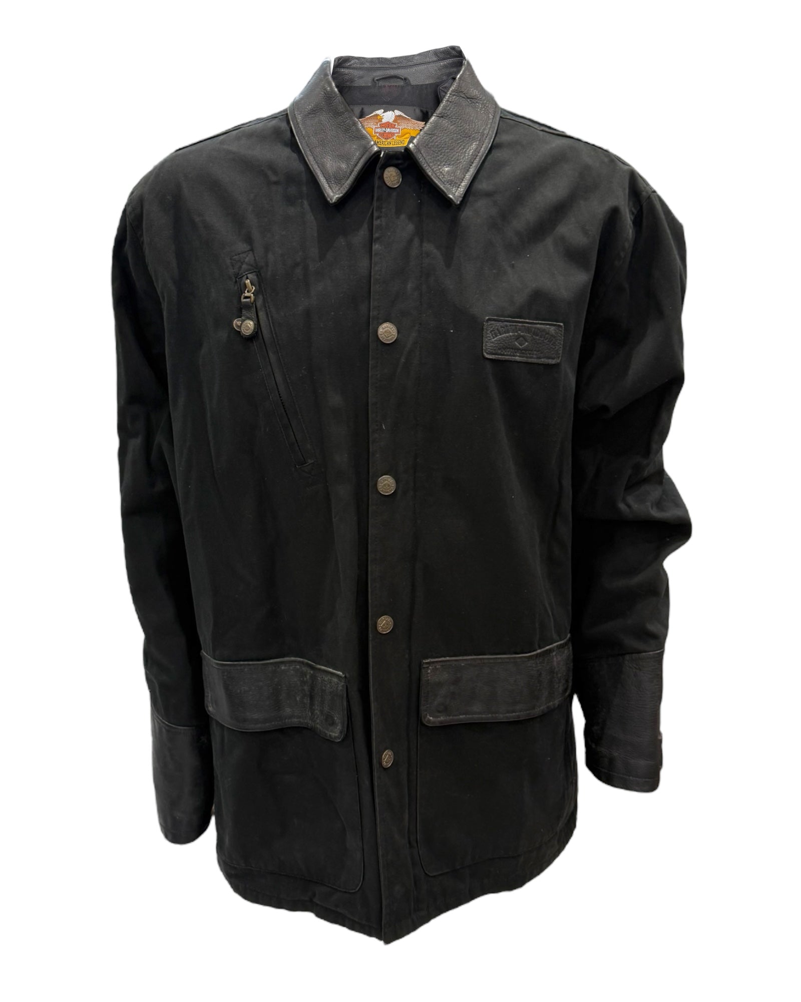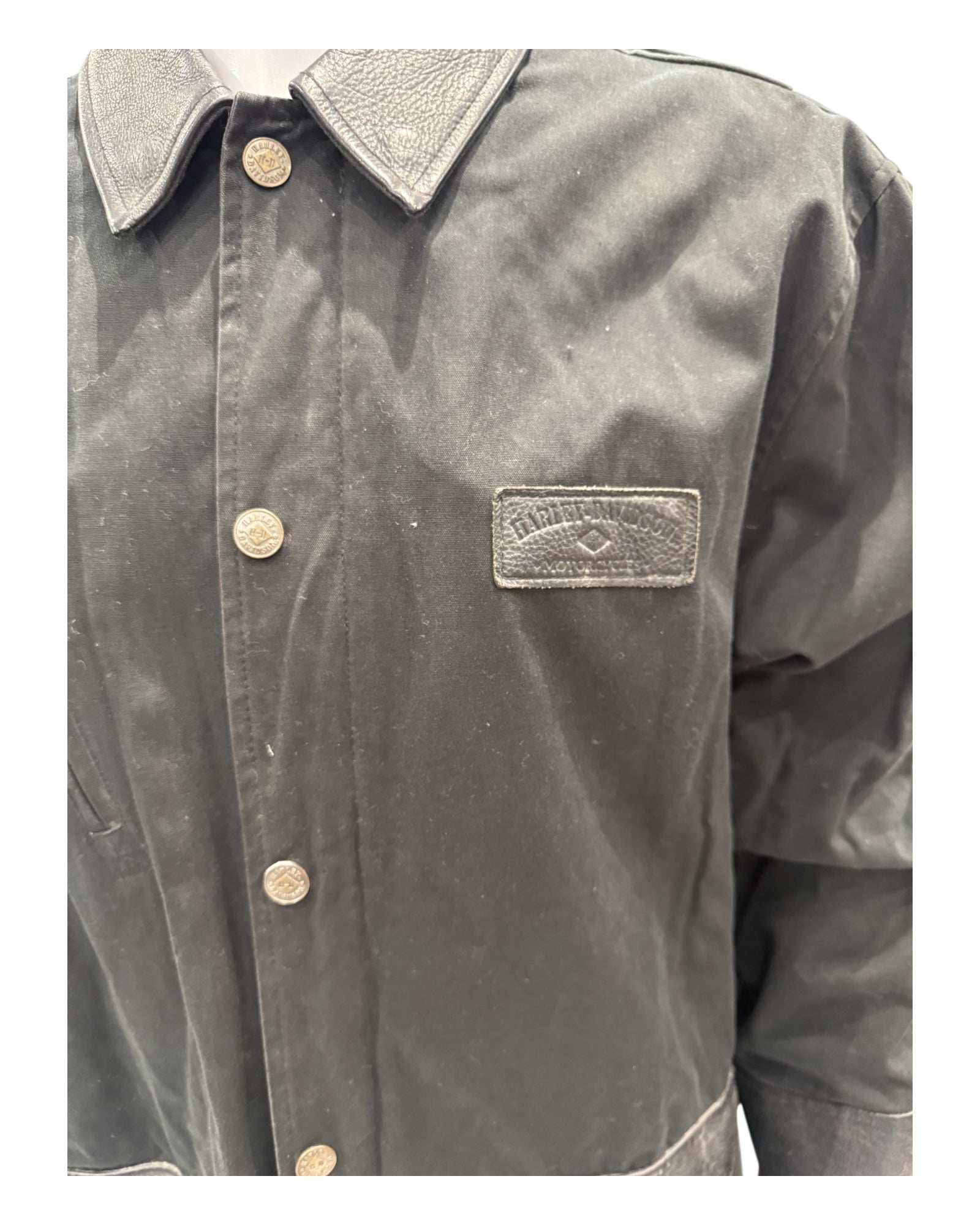 Vintage Harley Davidson Black Cotton and Leather Jacket