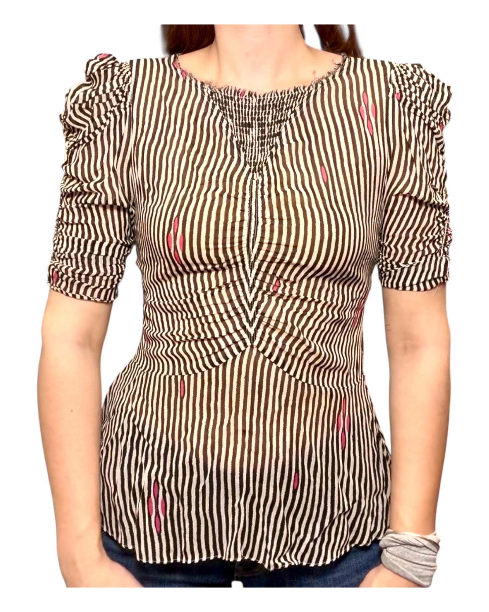 Vintage Isabel Marant Black, White and Pink Sheer Striped Peplum Top