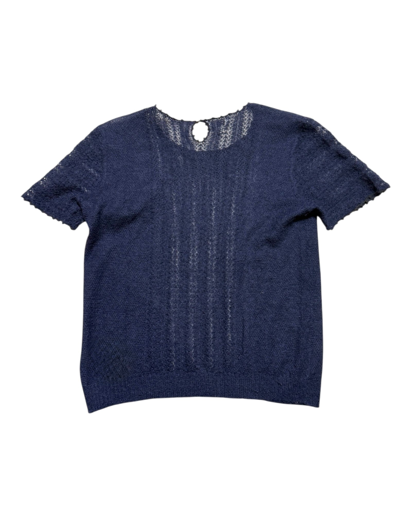 Vintage Navy Blue Knit Short Sleeve Sweater