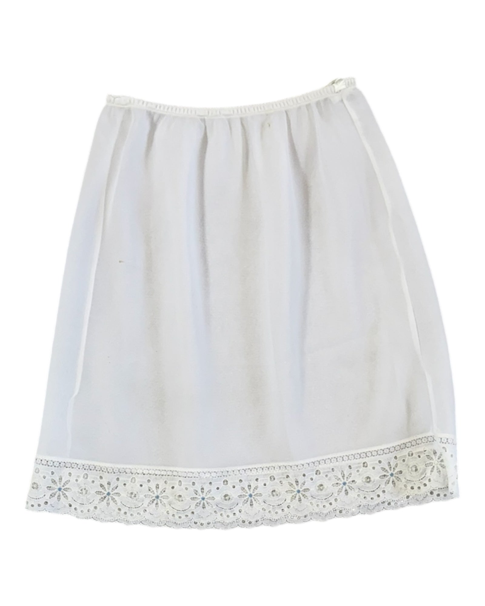 Vintage Sheer White Slip Skirt with Floral Lace Trim